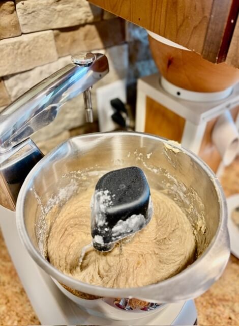 Feel free to let your mixer run for a good while here … there’s no flour in the bowl yet, so you don’t have to worry about accidentally summoning gluten bricks. And don’t forget to give your bowl the ol’ scrapey-scrape again.