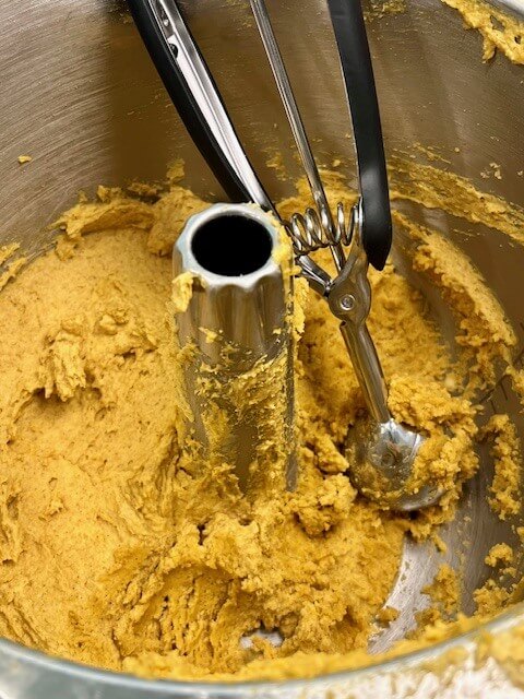 Alright, friends … it’s scooping time. We’ve mixed and probably sniffed this dough more than once (don’t lie, we’ve all done it). Now we get to transform our pumpkin cookies (freshly milled flour, optional) batter into adorable little mounds of happiness.