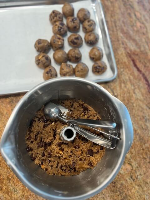 Of course, if you prefer a bakery-style giant cookie or a smaller, snackable version … feel free to adjust the size. Just keep in mind that changing the size will also change the baking time. That said, uniform dough balls … thanks to a scoop … mean evenly baked cookies and far less second-guessing. No more wondering if that last cookie is mysteriously larger than the first one.